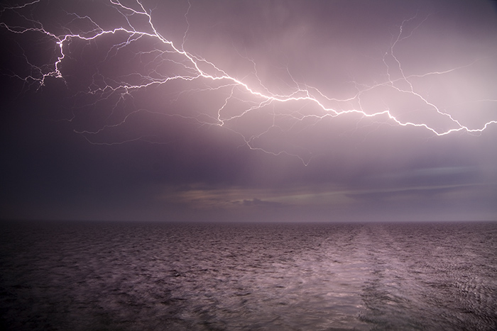 Thunderstorm Ocean Sky Night Dramatic Lightning Thunder Discharge Bright Bolt Clouds Nature Force Fire Electric Storm